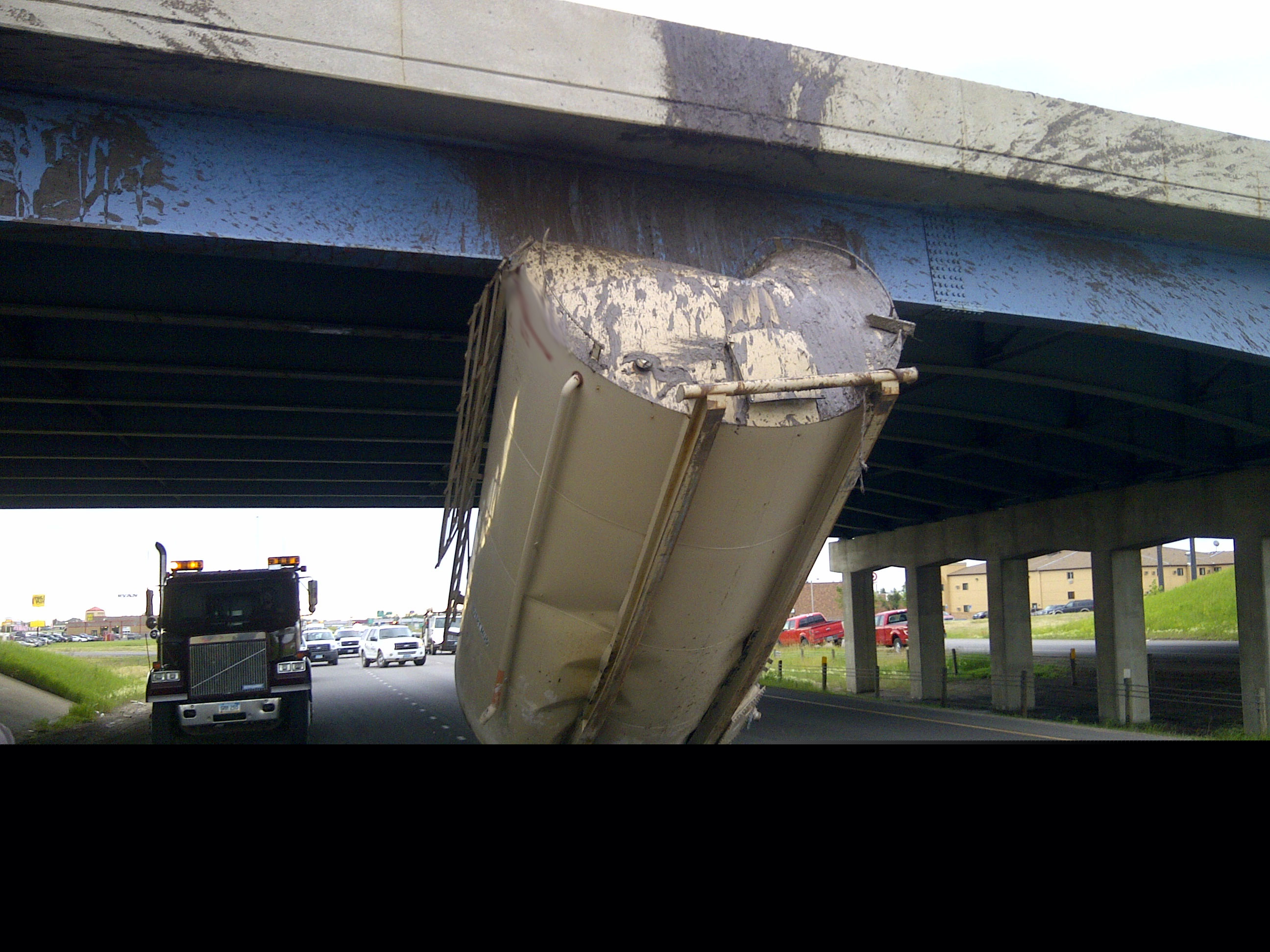 Tank Lodged Under Bridge